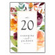 This autumn-themed table number card features beautiful fall flowers and a modern, sophisticated design. The watercolor flowers include roses in shades of plum, apricot, and peach. Fall foliage also decorates the table card. The front and back of the card are identical to make it easier for guests to find their table. Space along the bottom of the card accommodates a card holder without covering up the text.