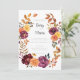 This autumn wedding invitation with detail enclosure features bold watercolor florals in burgundy and burnt orange—perfect for boho, rustic, or garden weddings.