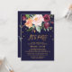 This autumn floral with wreath backing "Let's Party" invitation card is perfect for a fall event or party. The design features a stunning bouquet of blush, orange peach, and marsala burgundy flowers with faux gold foil typography and confetti. The backing features a gorgeous flower wreath with the words "Let's Party".