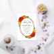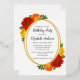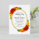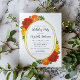Autumn red, orange and gold florals bordering gold circle frame with eucalyptus and botanical greenery for a fall event