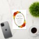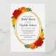 Autumn red, orange and gold florals bordering gold circle frame with eucalyptus and botanical greenery for a fall event