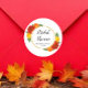 Autumn red, orange and gold florals bordering gold circle frame with eucalyptus and botanical greenery for a fall event