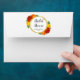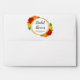 Autumn red, orange and gold florals bordering gold circle frame with eucalyptus and botanical greenery for a fall event