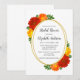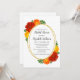 Autumn red, orange and gold florals bordering gold circle frame with eucalyptus and botanical greenery for a fall event