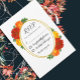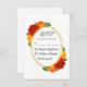 Autumn red, orange and gold florals bordering gold circle frame with eucalyptus and botanical greenery for a fall event