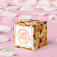 This favor gift box is shown with lovely autumn flowers and pumpkins print.