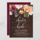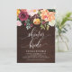 Let's shower the bride-to-be! Invite guests with this rustic floral bridal shower invitation. It features watercolor floral garland of orange, red and ivory peony, daisy, rose and greenery accents with faux wood background. Personalise by adding your event's details. This autumn rustic floral invitation is perfect for fall and garden bridal showers.