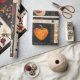 This wrapping paper features a folk art patchwork quilt style, arranged in a grid of autumnal and nature-inspired motifs. Prominent elements include orange pumpkins, stylised flowers, vine patterns, a red heart with cream outline, and a polka-dotted bird, all set within contrasting blocks of black, cream, and warm earthy tones like orange, red, and brown. The varied textures suggest appliqué, embroidery, or traditional quilting techniques, giving the design a homespun, handcrafted feel. Perfect for fall décor, rustic farmhouse style, Thanksgiving crafts, and primitive folk art lovers, this pattern blends cosy charm with seasonal elegance.