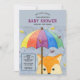 A baby shower invitation with an adorable baby fox with an umbrella to shield him from falling leaves. (<a href='https://www.freepik.com/free-vector/autumn-cards-collection-with-cute-animals-in-watercolor-style_2847973.htm'>Designed by Freepik</a>). <br/><br/>The card is easy to customise with your wording, font and font colour.<br/><br/>Not exactly what you're looking for? All our products can be custom designed to meet your needs at no extra charge.<br/><br/>Simply contact us at askcottonlamb@gmail.com.<br/><br/>Coordinating products available: Just ask us!