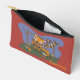 A cute zipper pouch for kids with a cartoon fox on the front and a brown and beige stripe pattern on the back . Personalise it with the child's name . Would be perfect to hold pens and pencils .