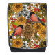 Hand-drawn autumn pattern featuring bullfinches, dahlia and chrysanthemum flowers, various berries, leaves and bugs