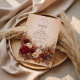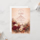 Inspired by rich autumn florals and romantic seasonal palettes, this wedding design features layered roses, dahlias, and soft foliage in warm rust, blush, and cream tones. The painterly floral border frames the layout beautifully, creating a refined yet inviting atmosphere that feels both classic and celebratory.