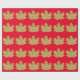 A gold metallic look maple leaf on a red background. Perfect for fall or winter gifts and crafts.