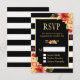 Autumn Gold Orang Red Floral B&W Stripes RSVP Card