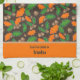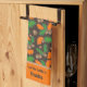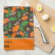 The Autumn Green and Orange Leaves Acorns Towel has bright green and orange leaves with brown acorns which pop against a deep brown background, bringing whimsical autumn charm to any kitchen. This personalised leaf autumn towel adds a playful “Leaf the Cookin” touch, making it a funny fall kitchen towel and perfect custom gift.