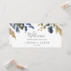 This autumn greenery hanging seating chart header is perfect for a fall wedding. The modern rustic design features navy blue, sage green and gold leaves with sprigs of dark blue flowers. The card prints on the front and back (double-sided). Please check the collection for the coordinating table number seating chart cards.