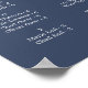This autumn greenery navy horizontal alphabetical seating chart is perfect for a fall wedding. This horizontal sign can be used to organise your guests alphabetically or by table number by changing the headings. The modern rustic design features navy blue, sage green and gold leaves with sprigs of dark blue flowers. This wedding poster includes enough room for up to about 100 guests. Make room for more (or less) guests by clicking the "customise" button and decrease or increase the size of the font. In addition to the placement of each guest, personalise this sign with the names of the bride and groom and the wedding date.