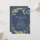 This autumn greenery navy housewarming party invitation is perfect for a fall event. The modern rustic design features navy blue, sage green and gold leaves with sprigs of dark blue flowers.
