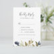 This autumn greenery song request RSVP card is perfect for a fall wedding. The modern rustic design features navy blue, sage green and gold leaves with sprigs of dark blue flowers. Build your wedding guest list and your dance floor song list all at once! This wedding response card conveniently asks guests if they'll be able to attend your wedding, and also what song will get them to dance.
