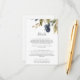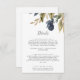 This autumn greenery wedding details enclosure card is perfect for a fall wedding. The modern rustic design features navy blue, sage green and gold leaves with sprigs of dark blue flowers.