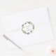 These autumn greenery wedding envelope seals are perfect for a fall wedding. The modern rustic design features navy blue, sage green and gold leaves with sprigs of dark blue flowers. Personalise the label with the names of the bride and groom.