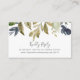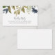 This autumn greenery wedding website RSVP enclosure card is perfect for a fall wedding. The modern rustic design features navy blue, sage green and gold leaves with sprigs of dark blue flowers.