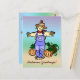 Cartoon scarecrow surrounded by pumpkins on a cute autumn postcard, from Heard_ & 369. ( 369Pro ) Front text is customisable, as is entire reverse side. Terrific for notes to teacher, teacher correspondence, business mailings, and Thanksgiving greetings. Buy in volume and save!