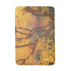 In a vivid yellow maple a male cardinal perches, keeping watch over his mate on the nearby bird feeder.
