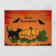 Autumn , Happy Thanksgiving With Bat and Black Cat Postcard