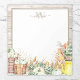 Whimsical, rustic fall harvest notepad with a wood background and customisable name template. Baskets full of pumpkins, autumn leaves, and wheat create a decorative rustic fall border along the bottom of the page. This cute autumn notepad can be personalised with a name and monogram, making for a special fall themed gift with a touch of country style.