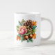 This jumbo size coffee mug is shown with a lovely autumn pinecone and acorns floral art print.