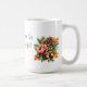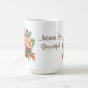 Coffee mug is shown with a lovely autumn pinecone and acorns floral art print. Autumn Is Beautiful Text.