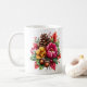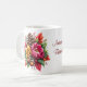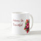 Coffee mug is shown with a lovely autumn pinecone and acorns floral art print. Autumn Is Beautiful Text.