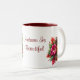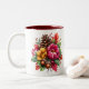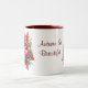 Coffee mug is shown with a lovely autumn pinecone and acorns floral art print. Autumn Is Beautiful Text.