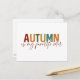 This vibrant and stylish fall design features the phrase "Autumn is my favourite colour" in a bold and expressive layout. The word "AUTUMN" is highlighted in large, blocky letters, each filled with a different warm, autumnal hue—ranging from deep red to golden yellow, earthy green, and rich teal—perfectly capturing the diverse palette of the season. The rest of the phrase, "is my favourite colour," is written in a flowing, elegant script that adds a touch of sophistication and warmth. The contrast between the bold typography and the delicate script creates a visually appealing balance, making this design ideal for fall.