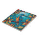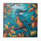 A ceramic tile featuring a kingfisher during autumn in stained glass style.