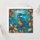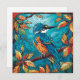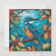 A flat card featuring a kingfisher during autumn in stained glass style.