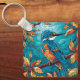 A key chain featuring a kingfisher during autumn in stained glass style.