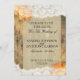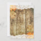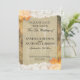 A rustic wood background with Autumn leaves and a delicate lace border. The save the date announcement is part of a complete wedding invitation set.