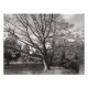 A subtly warm toned highly detailed photo taken at Bute Park, Cardiff, Wales, UK on a bright late October day. The Dock Feeder Canal can be seen on the right with a spreading Oak Tree in the middle which stands between two paths leading in different directions. A nice black and white photo with lots of detail and a broad tonal range.
