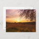 Autumn lavender field on sunset postcard