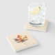The coasters are gorgeous, a quality feel and heavy weight. They look like a precious archeological find. A rustic stone juxtaposed with a modern floral black and white print. I like the way the print goes slightly imperfect on the cut stone edges giving them a kind-of natural beauty.