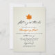 Invite your family and friends to your Thanksgiving Party in style with this elegant Thanksgiving Party Invitation featuring a single, orange autumn leaf illustration. You have the option to move the design elements and change the wording/font/colour to fit your style as well.
