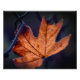 Close up, macro photo of a autumn leaf wedge against a chain link.