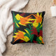 This striking decorative throw pillow features an abstract pattern of leaves in all the colours of Autumn: orange, yellow, red and green. The design is repeated on the back.