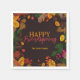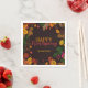 Celebrate Friendsgiving in style with these fully customisable paper napkins! The napkins feature a beautiful hand-drawn autumn leaves, berries, and acorns border in shades of orange, yellow, and red, set against a dark brown background. The centre of the napkin displays the text “Happy Friendsgiving” in a cursive orange/red font, with space below for your family name or custom message. These napkins are the perfect addition to any Friendsgiving celebration, adding a touch of warmth and festivity to your table setting.