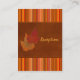 This autumn leaves and stripes enclosure card, in shades of orange, brown, red, and gold matches the invitation and other items shown below. Some of the papers will alter the colour of the design, so use caution if you choose one of the paper types besides the basic white shown here. ALSO, if you re-size the card, or if you change fonts, or the size of the font, some of the design and/or text may get cut-off. Everything will print as you see it on your monitor. I will not see your card, and Zazzle will NOT correct anything (typos, mis-alignment etc.). The text and paper is all customisable. If you need help with this card, please email me BEFORE you place your order. If you require any other matching items, please email your request to niteowlstudio@gmail.com