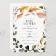 Beautiful autumn baby shower invitation framed by colourful autumn foliage and greenery. Perfect for a fall or autumn baby shower.. Customise with your wording. Click "Customise further" to edit the font style, size and colour if desired.