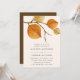 Elegant and rustic fall wedding invitations featuring a branch with autumn leaves and your wedding details displayed below. The reverse side of the invite features a contrasting dark brown background colour.