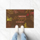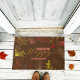 Warmly welcome guests this holiday season with this Happy Thanksgiving door mat. The rich, chocolate brown background is adorned with a stunning array of artistic fall foliage. Delicate outlines of leaves and branches in soft pink, burnt orange, and warm yellow create an intricate and festive border. The personalised "Happy Thanksgiving" text, featuring both a flowing script and a modern sans-serif font, adds a final, elegant touch.